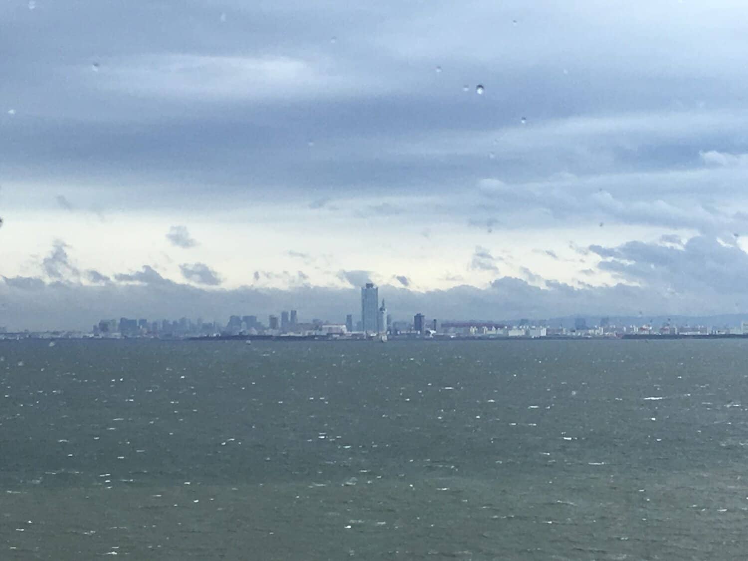 We dropped anchor in Osaka bay at about midnight. When I looked out of the window this morning it looked like we were still out to sea, but as the fog lifted the factories appeared, and we had a good view of Osaka.