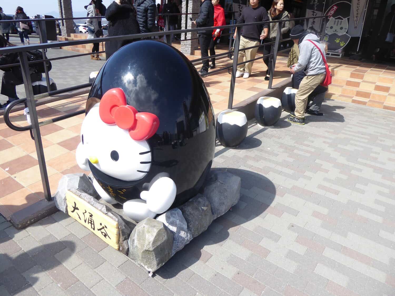 Although the clouds were moving in, we still had great views of Mt Fuji from the Rope Way and Owakudani Station, and we stayed there for a while admiring the view, eating the eggs, and wondering what the bizarre Hello Kitty black egg was all about.