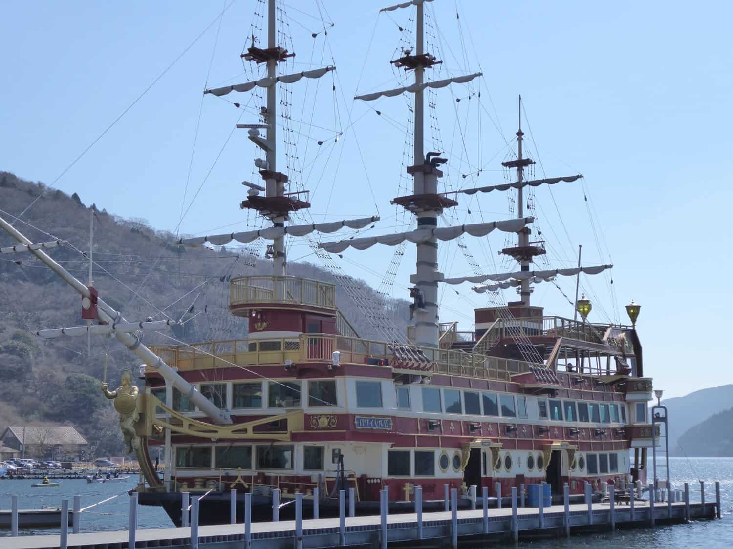 The Rope Way then takes you down to Togendai Station on Lake Ashi, and you get great views of the lake on your way down. Well, if you thought the black egg Hello Kitty was strange, things became weirder. On reaching the shores of Lake Ashi we were expecting to board a pirate ship, but it turned out to be a replica of the Victory, which came complete with an oriental looking Nelson, and motored across the lake to Hakone.