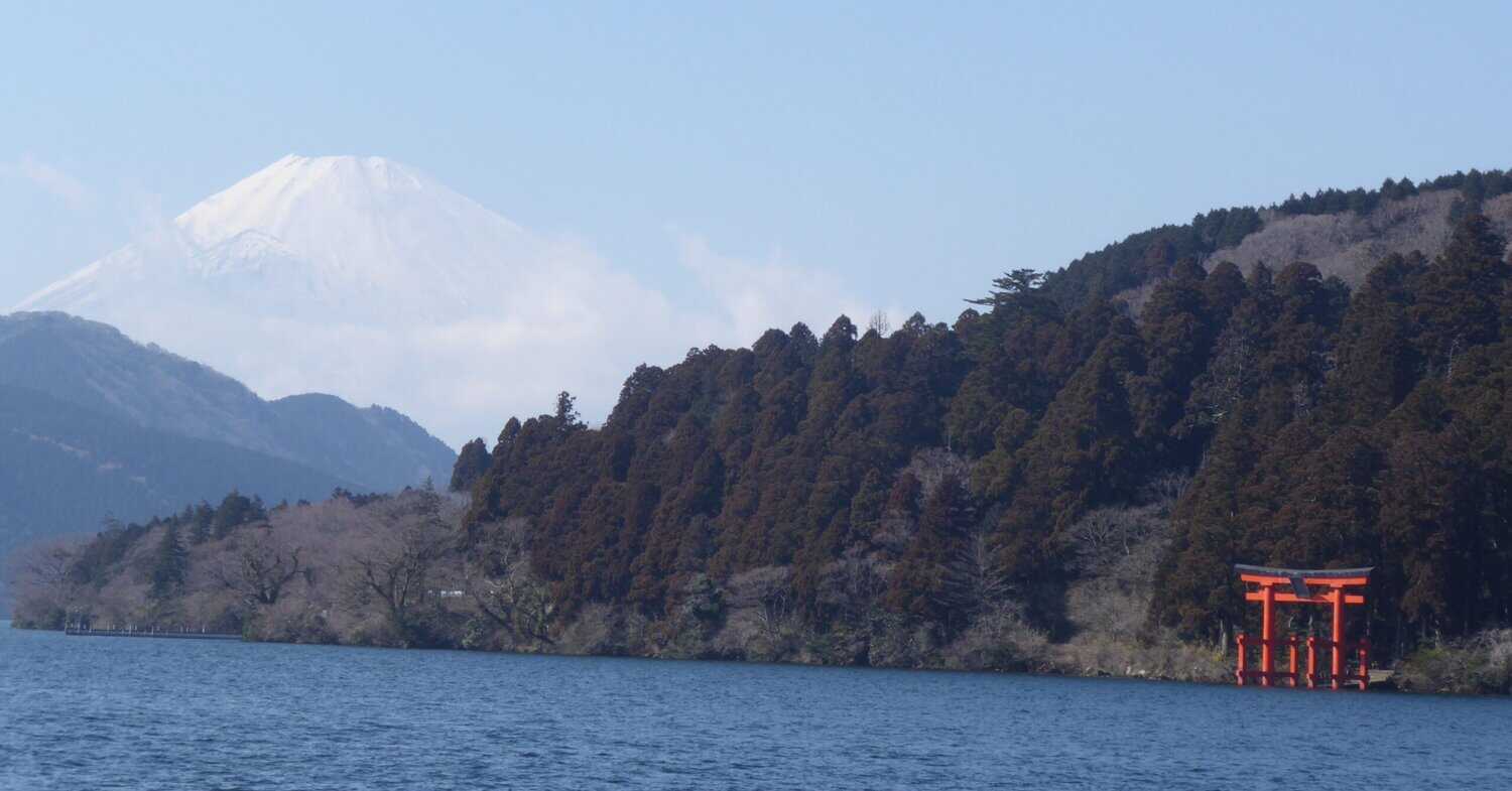 After we disembarked we walked around the lake to the Hakone Shrine, and were lucky enough to get picture perfect views of Mt Fuji along the way.